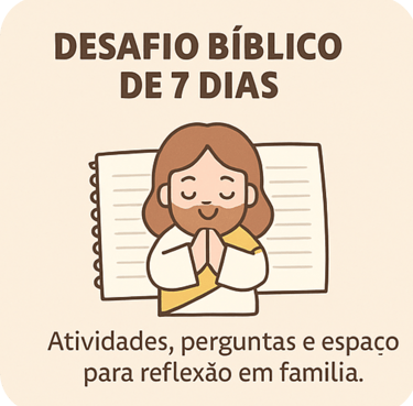 Personagens bíblicos fofos, versículos fáceis, e lições sobre amor, amizade, coragem e gratidão.